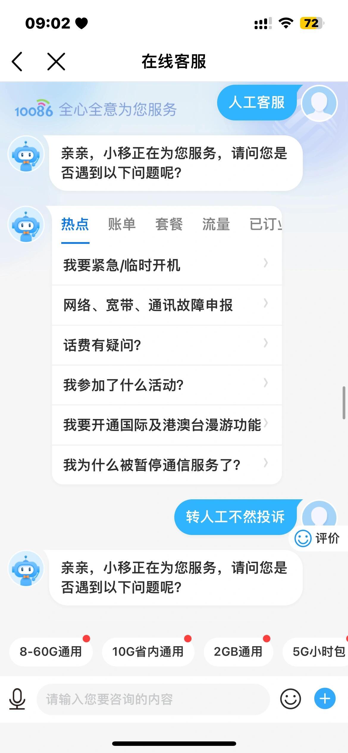 10086人工服务短信怎么评论信息